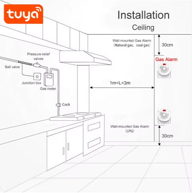 Instant Gas Leak Alerts – Detects natural gas (CH₄) and sends instant push notifications through the Tuya Smart or Smart Life app.
