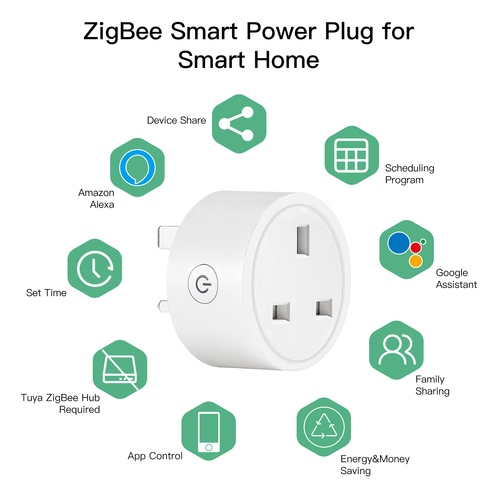 This ZigBee smart Plug is compatible with Tuya Smart APP for intelligent controls via smart phones,featured as wireless remote control your connected light-duty electronic with single touch in APP with Tuya ZigBee hub required for successful APP configuration.And ZIG Mesh is functional well to act as a communication relay for other ZigBee devices;Meanwhile,there is the ON/OFF power button on the Plug itself for simple manual control.