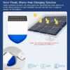 - Solar Panel, Worry-free Charging Solution:Under sufficient sunlight, the solar panel will automatically store electricity in the lithium battery; in rainy weather, you can use the type-c cable to charge for the battery.
