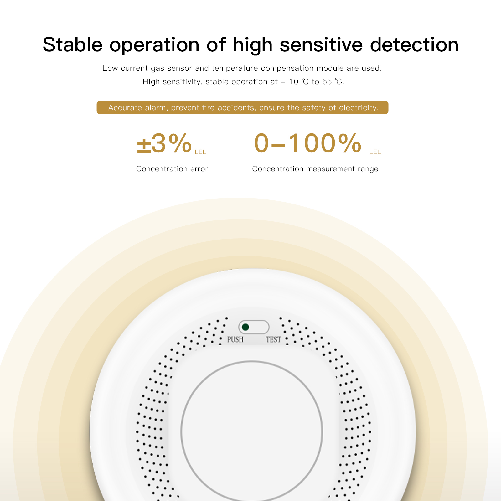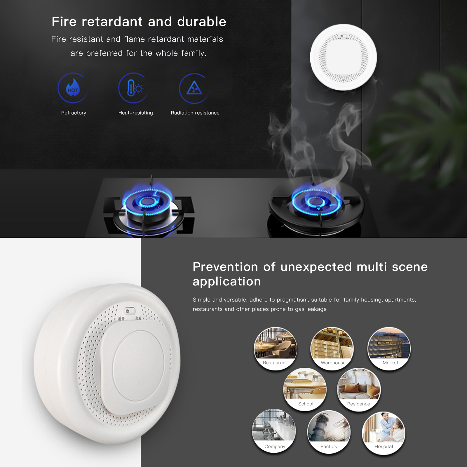 • Real-time Voice Alarm Prompt with Wide Range: This smart smoke detector owns the wide monitoring range of 3m ahead, and it will intelligently and quickly issue more than 85dB alarm sound and push notification to you App automatically.